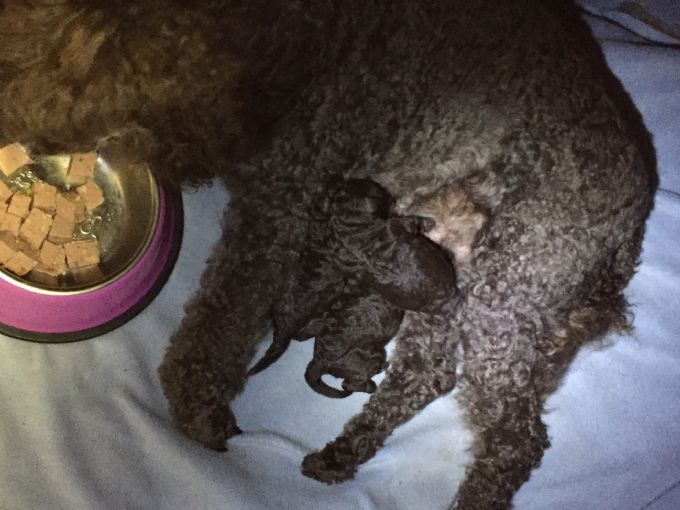 The beautiful Muffin (Ch Bienaime Cest La Vie ) has finally got pregnant after the third try and has puppies.